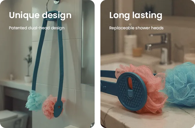 Our unique, patented dual-head shower brush is designed to elevate your shower experience! The Back Scrub Pro does it all, making your daily routine more efficient and enjoyable.